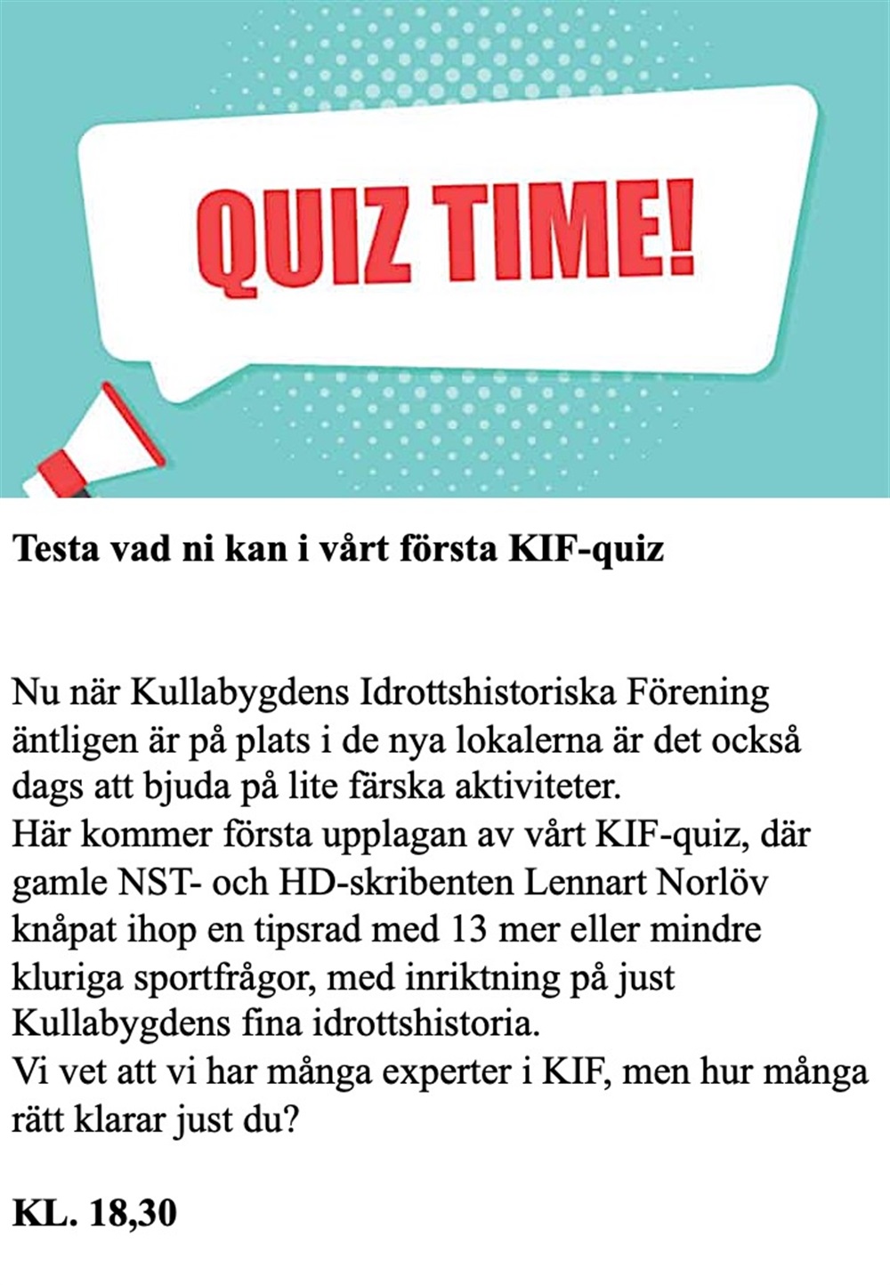 KIF har inlett ett samarbete med Höganäs kommuns enhet för Omsorg och stöd, kontaktperson Ann-Sofie Derwik. Denna enhet vänder sig i första hand till kommuninvånare som uppnått mogen ålder (vilket de flesta KIF:are har)....